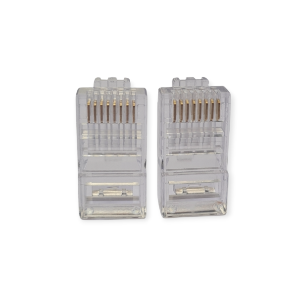 Descripción del producto: Conector modular RJ45 transparente, utilizado para la terminación de cables de red Ethernet. Permite una conexión segura y confiable en sistemas de telecomunicaciones y redes informáticas, garantizando transmisión estable de datos.