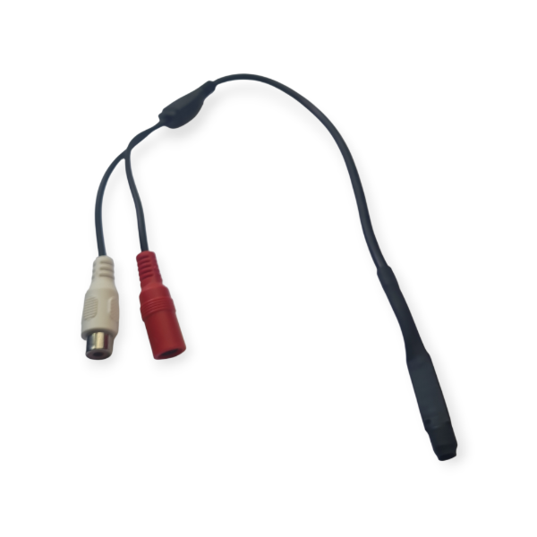 Descripción del producto: El micrófono CCTV con fichas de alimentación y audio es un accesorio diseñado para complementar sistemas de videovigilancia, permitiendo captar sonido ambiente junto con la señal de video. Su conexión sencilla mediante fichas RCA y DC lo hace compatible con la mayoría de cámaras y DVR, ofreciendo una instalación rápida y segura.