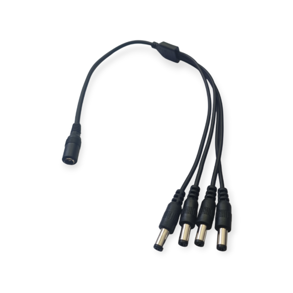 Descripción del producto: El derivador de alimentación DC 1 a 4 es un accesorio práctico que permite distribuir energía desde una sola fuente hacia cuatro dispositivos simultáneamente. Diseñado para instalaciones de cámaras de seguridad, sistemas de iluminación LED y otros equipos electrónicos, garantiza una conexión estable y segura sin necesidad de múltiples adaptadores.