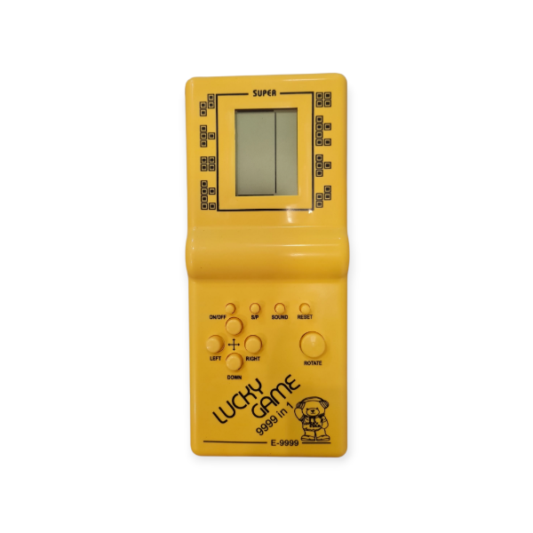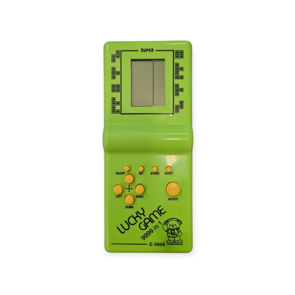 🎮 Lucky Game 9999 in 1 – Modelo E-9999 ¡Diversión retro en la palma de tu mano! Este clásico juego electrónico portátil revive la magia de los 90 con su diseño vibrante y su icónico juego de bloques estilo Tetris.