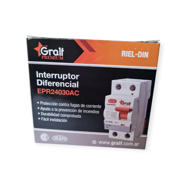 Interruptor Diferencial 1P+N 40A 30mA – 10kA Código: EPR24030AC