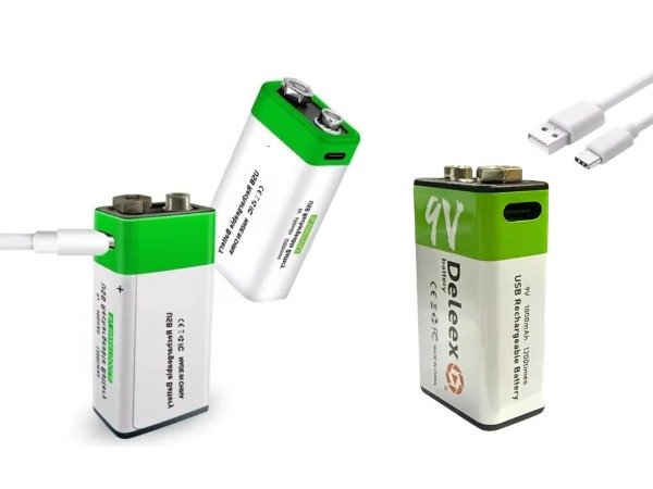 Batería recargable Deleex 9V con puerto Type-C. Diseñada para ofrecer una solución práctica, ecológica y duradera, esta batería incluye cable de carga Type-C y permite hasta 1200 ciclos de recarga, garantizando un rendimiento confiable para dispositivos que requieren alimentación de 9V.
