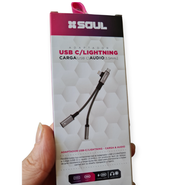 Funciones principales: Permite conectar teléfonos, tablets o iPads que usan puerto USB-C o Lightning a parlantes, equipos de sonido, autoradios o auriculares con entrada 3.5 mm (AUX).