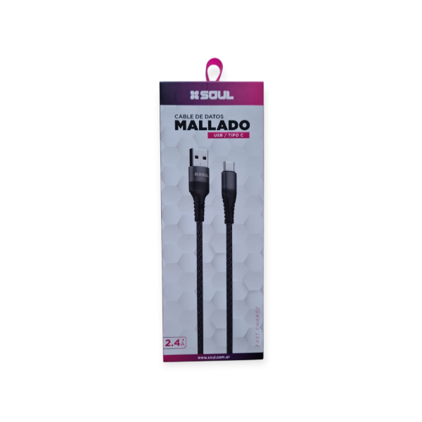 El Soul Mallado USB/Tipo-C es un cable de datos resistente y confiable, diseñado para ofrecer carga rápida y transferencia estable. Su recubrimiento mallado brinda mayor durabilidad y evita daños por uso intensivo, mientras que su capacidad de 2.4A asegura un rendimiento eficiente en todo momento.