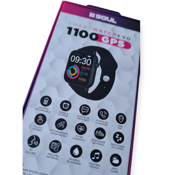 Smartwatch Soul EVO1100 GPS con Función Calling El Soul EVO1100 es un smartwatch completo que combina estilo, conectividad y funciones de salud. Equipado con GPS integrado y micrófono para realizar y recibir llamadas, se convierte en un aliado ideal para tu día a día. Además, incluye múltiples herramientas de control y bienestar para acompañarte en cada actividad.