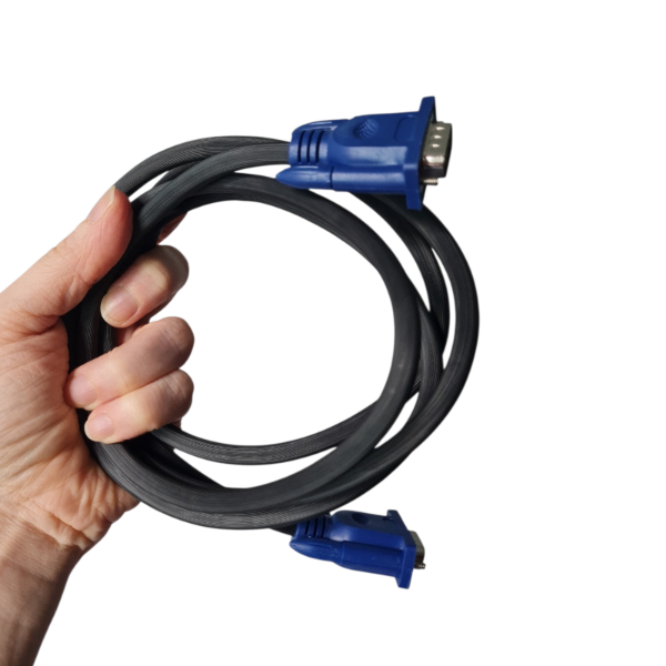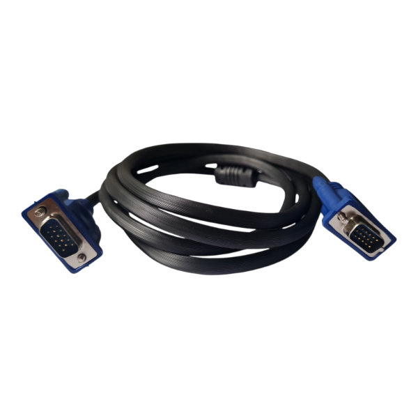 Cable de video analógico con conectores VGA macho en ambos extremos. Ideal para conectar monitores, proyectores y pantallas a computadoras u otros dispositivos compatibles.