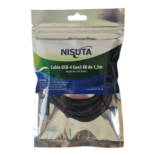 Cable de alto rendimiento diseñado para transmisión de datos, video y energía con la máxima calidad. Ideal para notebooks, PCs y dispositivos compatibles con Thunderbolt 4 y USB-4.