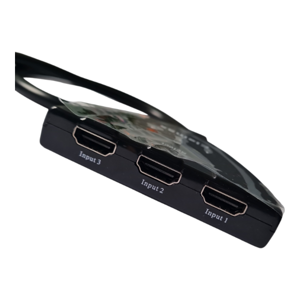 Dispositivo práctico que permite conectar hasta 3 equipos HDMI (como consolas, reproductores, notebooks o decodificadores) a un solo televisor o monitor. Con un botón de selección y luces indicadoras, puedes cambiar fácilmente entre las diferentes fuentes sin necesidad de desconectar cables.