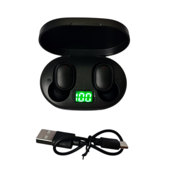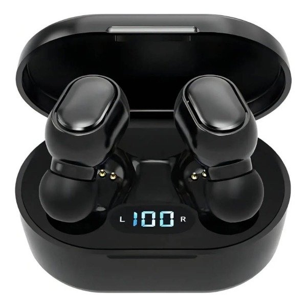 Auriculares diseñados para brindar comodidad, sonido estéreo claro y libertad total de movimiento, acompañados por un estuche de carga con pantalla digital que facilita el control de la batería.