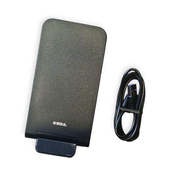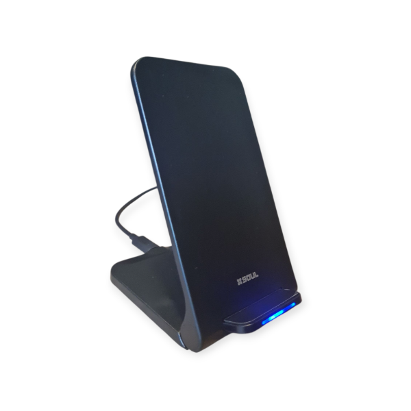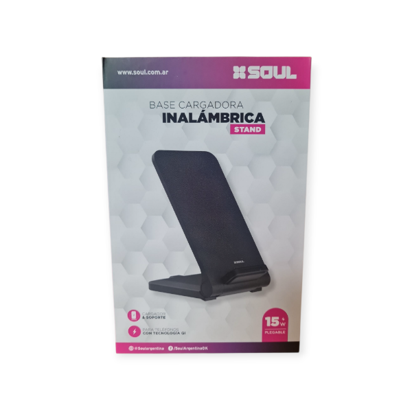 La Base Cargadora Inalámbrica Stand de Soul es la solución ideal para cargar tu dispositivo sin cables y con estilo. Su formato tipo stand permite visualizar la pantalla mientras carga, y su diseño plegable la hace perfecta para escritorio o viajes.