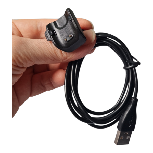 Cable de carga con conector USB-A estándar y punta magnética de dos pines, diseñado exclusivamente para el smartwatch Galaxy Fit 2.
