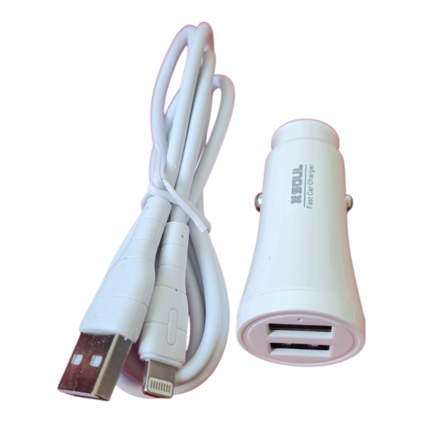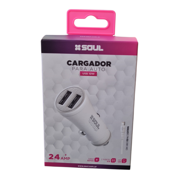 Cargador para Auto SOUL 2 Puertos USB 2.4A con Cable Lightning