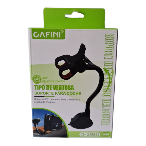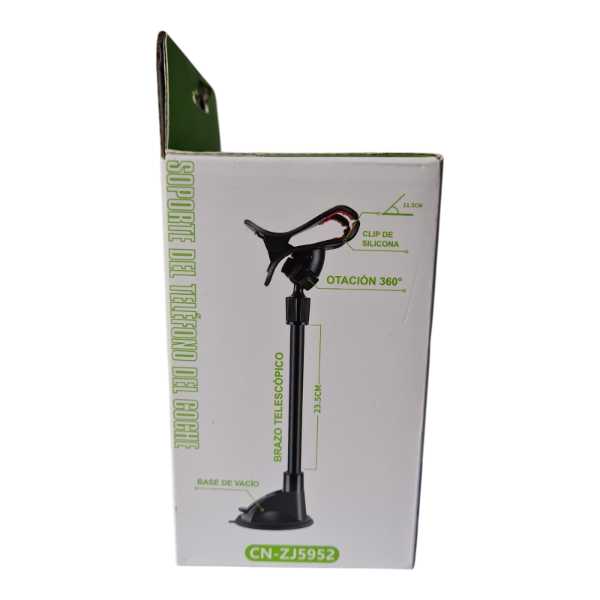 Rotación de 360° para ajuste completo Brazo flexible que se dobla a voluntad Sistema de ventosa resistente y a prueba de choques Compatible con la mayoría de celulares Modelo CN-ZJ5952